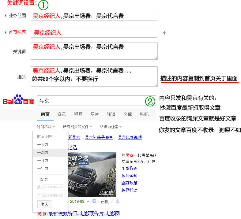 假如經(jīng)紀(jì)人公司(你的公司),大大小小上千個明星(關(guān)鍵詞),一個明星(關(guān)鍵詞)做一個網(wǎng)站,什么明星(關(guān)鍵詞)都做,排名上不去。